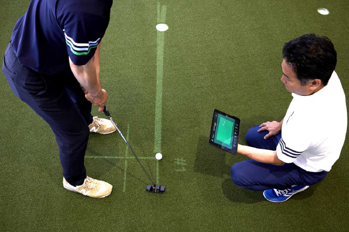 2010年のオープン以来「インドア練習施設での技術向上に何が必要か」を追究し続け、特にスコアアップに直結する要素が効率的に身につくプログラムを開発しました。すべてのレッスンルームに最新機器を導入し、本番さながらのパット練習が行えるパッティンググリーンも配置。上達のためのエッセンスが凝縮されたレッスンとなっています。