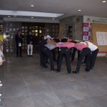 対戦が終わった後はお互いの健闘を称えエール交換。薄暗くなりつつあったゴルフ場に、両校代表の声が響きわたります。大学対抗戦ならではの光景です。