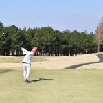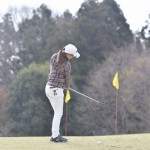 なかでも藤代成美選手は、インスタートの前半は14番パー5でバーディを奪うなど健闘。ボギーも2つあったものの1オーバーで折り返しました。後半に入ってから6番ボギー、7番ダブルボギー、8番ボギーとスコアを崩したのが残念でしたが、トータル5オーバーの「77」でホールアウトし、11位でフィニッシュ。「今日は前半パーオン率がほぼ100%だったのですが、パターの調子が今ひとつで耐え凌ぐゴルフになりました。一番良くなかったのは後半の7番で、4パットでダブルボギーを叩いてから調子を崩してしまったのが反省点です。静ヒルズカントリークラブは、グリーンの傾斜を読むのが難しく戦略性が高いコースだと思います。練習施設も充実していて、特に新しくなったアプローチ練習場は使いやすいですね。広いため、高い球や低く出して止めるボールなど色々な打ち方を試せるので、練習で技の引き出しを増やすことができます」と語ってくれました。