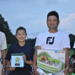 試合の方はトップの11アンダーに4チームが並ぶ混戦に。児童の年齢が低いチームが上位というルールにより鈴木日和子ペア(岩間第三5年)が優勝。なんと最終ホールのホールインワンを出してトップに立つという劇的な勝利でした。