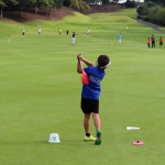 ティーショットは全部お子さんが打ちます。スタートホールでは多くの子供たちがコースや競技委員の方に一礼。スナッグゴルフを通じて礼儀も身につけているようです。
