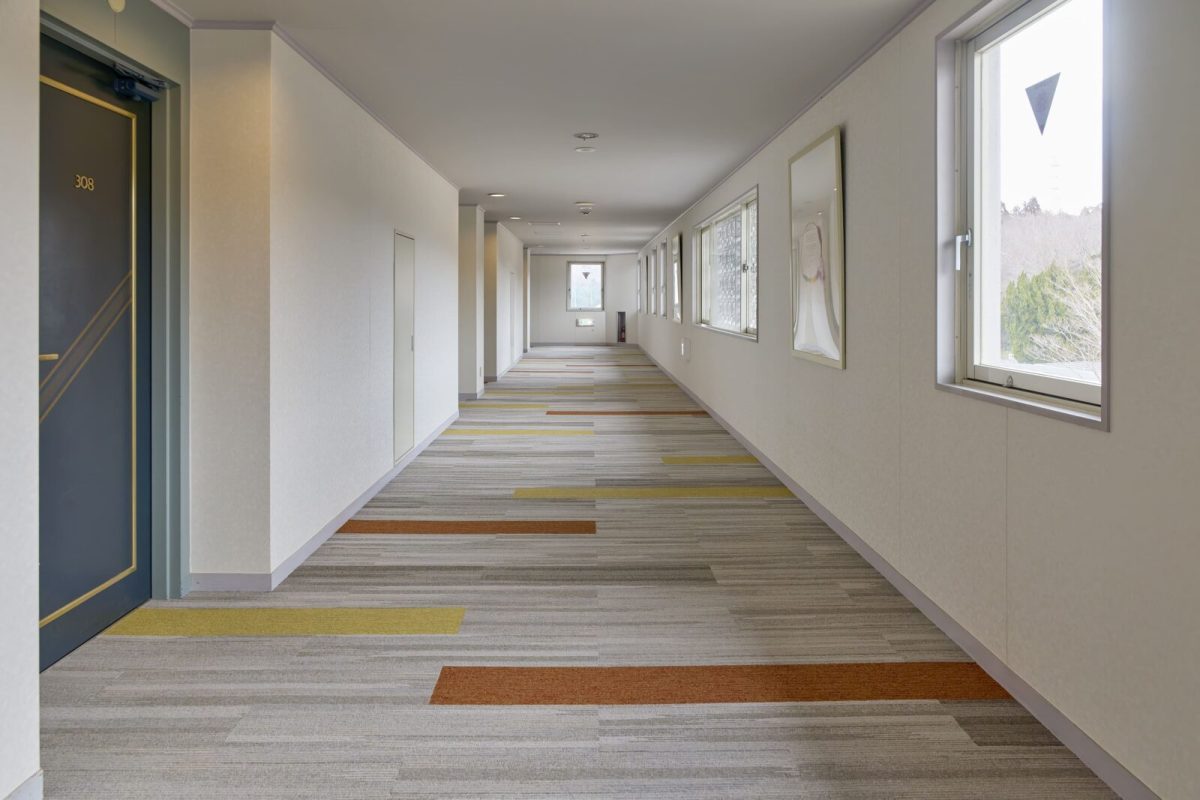 この度、2Fおよび3Fフロアの廊下カーペットをリニューアルいたしました。 モダンなデザインを取り入れ、これまでの雰囲気から一新。より明るく、開放感と落ち着きが調和した空間へと生まれ変わりました。