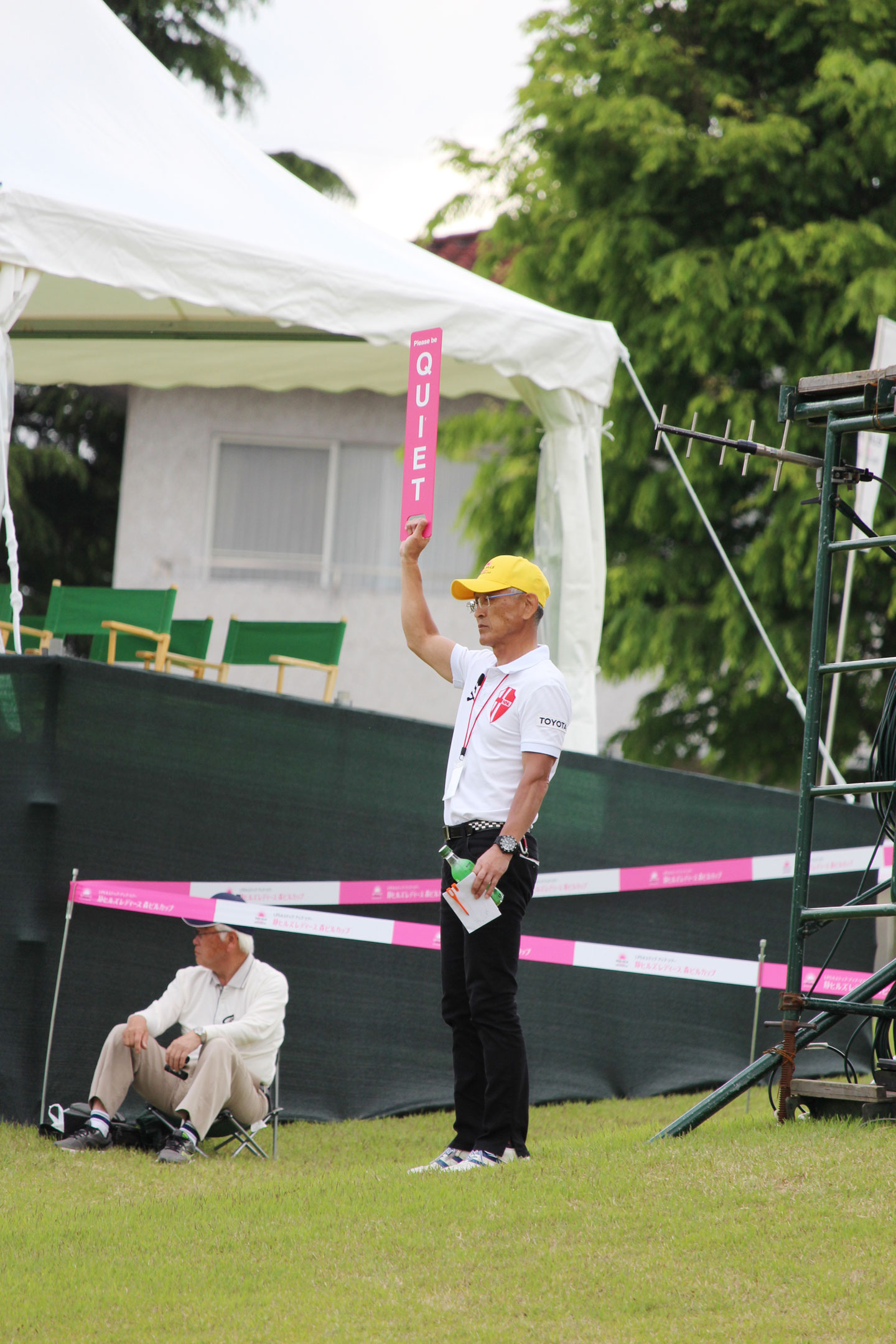 なお、本トーナメントは多くのボランティアに支えられています。2日目は約80名のボランティアの皆様が、ギャラリー整理、各ホールの選手のスコアをチェックするスコアラー、そして速報板(リーダーボード)の管理に携わっており、最終日の明日はさらに多くのボランティアの皆様が本大会を支えてくださることになっています。