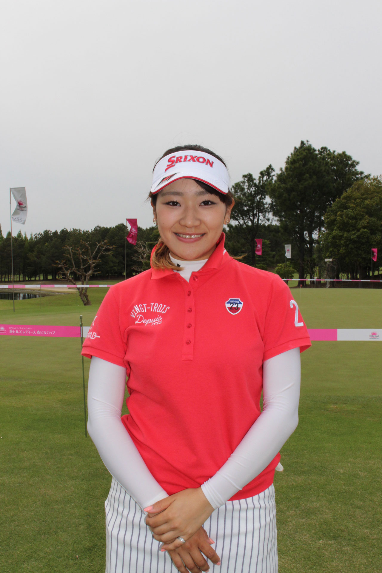高校生の時、「ファルドシリーズ日本大会」への出場経験がある村田理沙選手。「会場は宍戸ヒルズカントリークラブだったのですが、コースがとても難しかった」と懐かしそうに話してくれました。静ヒルズカントリークラブは小学生の頃毎年出てきた横尾要カップで慣れ親しんだ会場。「その頃とは全然セッティグも違いますし、練習ラウンドをしたところグリーンが固くて早いので、かなり難しい」とのことでしたが、このセッティングが本人のやる気に火をつけた模様。「調子は上がってきていますし、目標はもちろん優勝です」と難コース攻略に挑みます。
