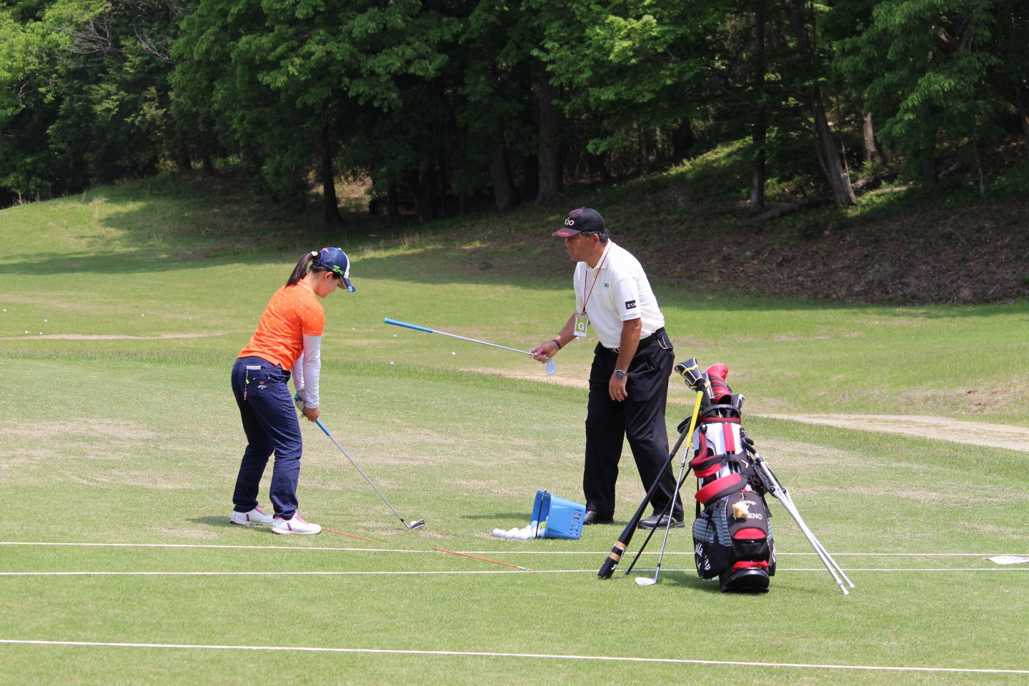 最終日の12日(金)、前日予選落ちをしてしまい練習を行うために訪れた政田夢乃選手を見かけると早速声をかけ、ショットからパッティングまで約2時間のマンツーマンレッスン。前の日も予選落ち直後に練習をしていた山口すず夏選手に個別指導を行っていました。今回は中嶋プロが情熱を注いでいるヒルズゴルフアカデミーについて紹介します。