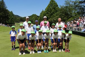 最終日のスタートホールで、恒例のキッズエスコートを開催!!