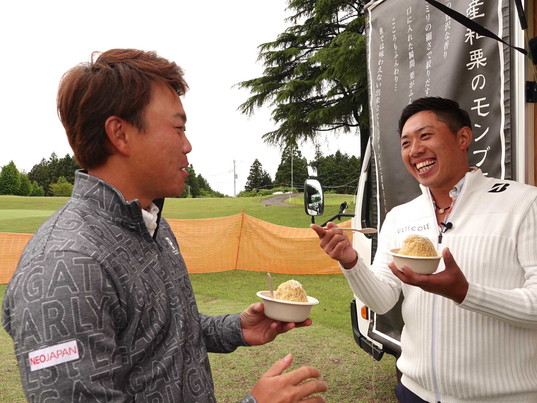 そして、デザート。笠間産和栗の「栗乃薫」のモンブランをご賞味いただきました。「口に入れた瞬間に溶けるこの食感がたまらない」、「甘過ぎず、栗の美味しさが味わえる」と極細1ミリのモンブランをほめまくり。「ラウンド後のご褒美として最高ですね」とまた食べたい様子でした。