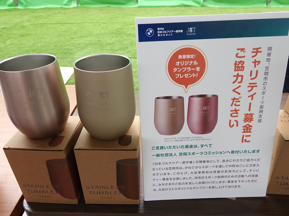 会場となる宍戸ヒルズカントリークラブの地元である茨城県笠間市のスポーツ振興のための活動支援を目的に、活動支援を実施中!皆様からの募金は、笠間市スポーツコミッションへ寄付されます。なお、チャリティ募金にご協力いただいた皆さまには、「BMW日本ゴルフツアー選手権 森ビルカップ」ロゴ入りオリジナルタンブラーボトルを差し上げます。