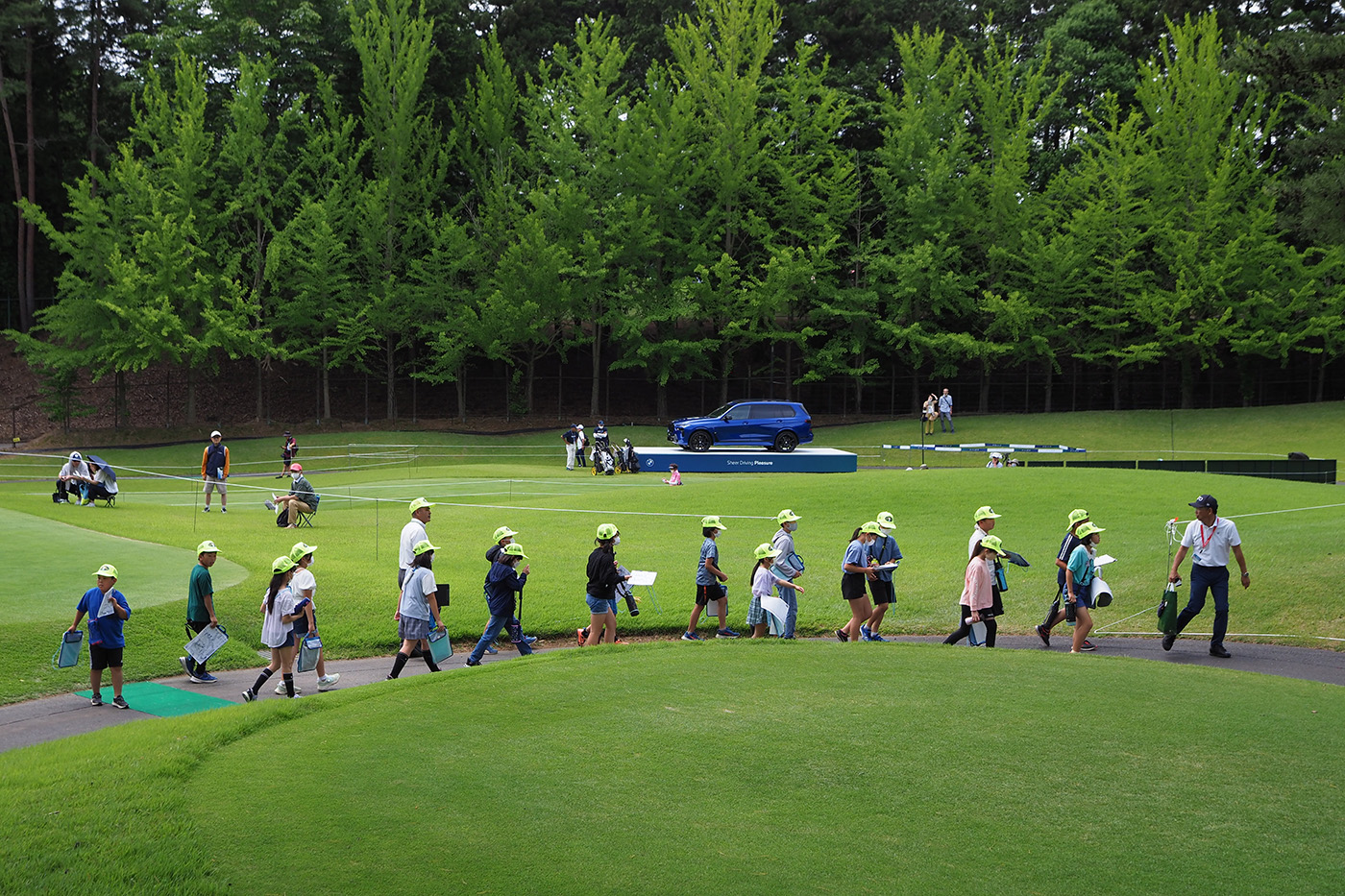 地元の小学生約100名が学習活動の一環として、「BMW 日本ゴルフツアー選手権 森ビルカップ」に来場。トーナメントの舞台裏を見学しました。