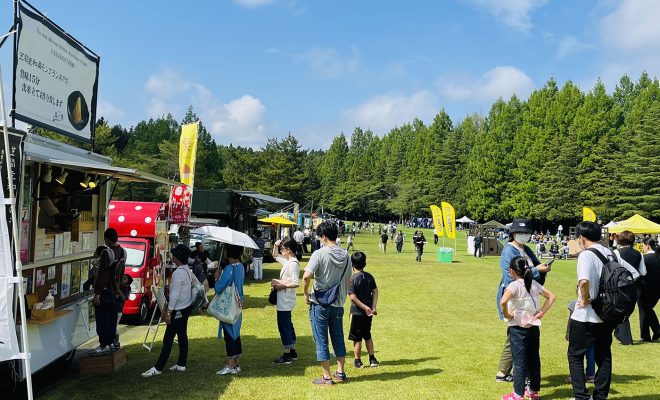 晴天の中、かさまスポーツ&フードフェスがスタート!お昼時のフードエリアは大賑わい