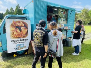 晴天の中、かさまスポーツ&フードフェスがスタート!お昼時のフードエリアは大賑わい
