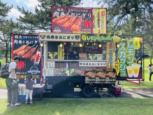 晴天の中、かさまスポーツ&フードフェスがスタート!お昼時のフードエリアは大賑わい