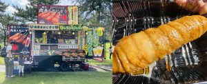 晴天の中、かさまスポーツ&フードフェスがスタート!お昼時のフードエリアは大賑わい