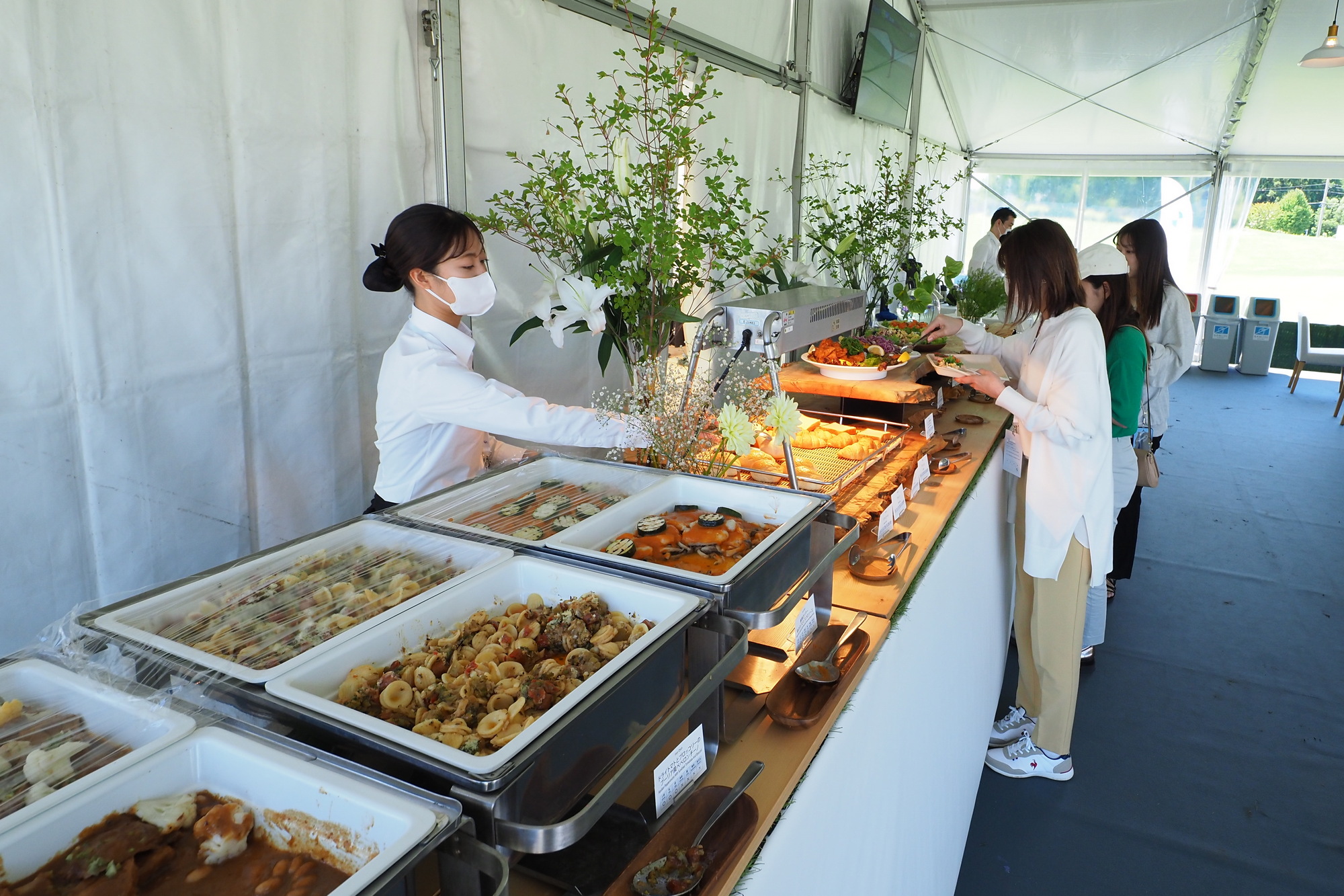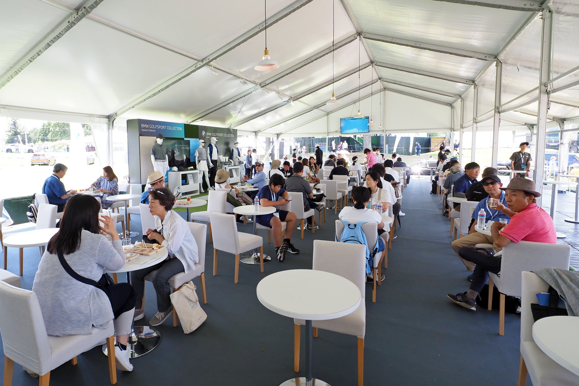ドリンクを片手に観戦プランを練ったり、ランチ時にはビュッフェの食事を楽しんだり。さらには仲間同士で、ビールやワインを飲みながら会話を楽しんでいたギャラリーも少なくありませんでした。「BMW OWNER’S LOUNGE」では日本のトーナメントではあまり体験できない、ゆったりとした時間が流れていました。