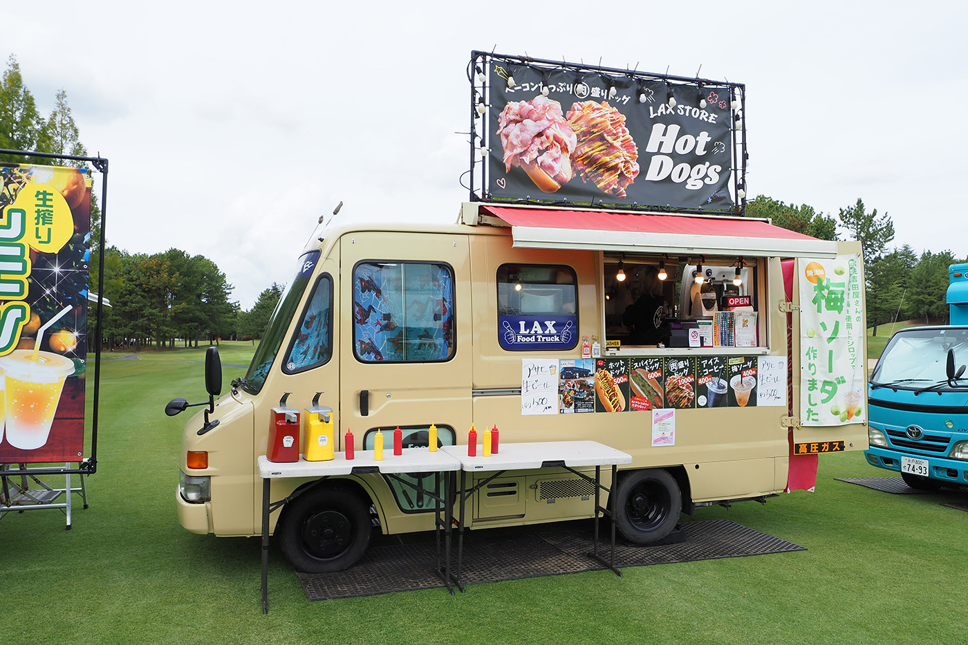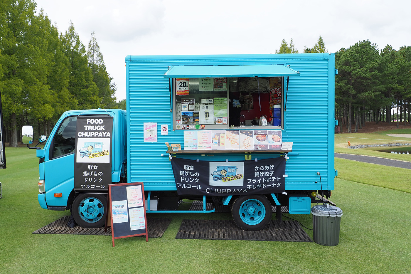 人気のキッチンカーが4店舗出店! 1番ティと18番グリーンを見渡せるギャラリープラザ