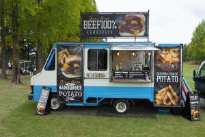 人気のキッチンカーが4店舗出店! 1番ティと18番グリーンを見渡せるギャラリープラザ
