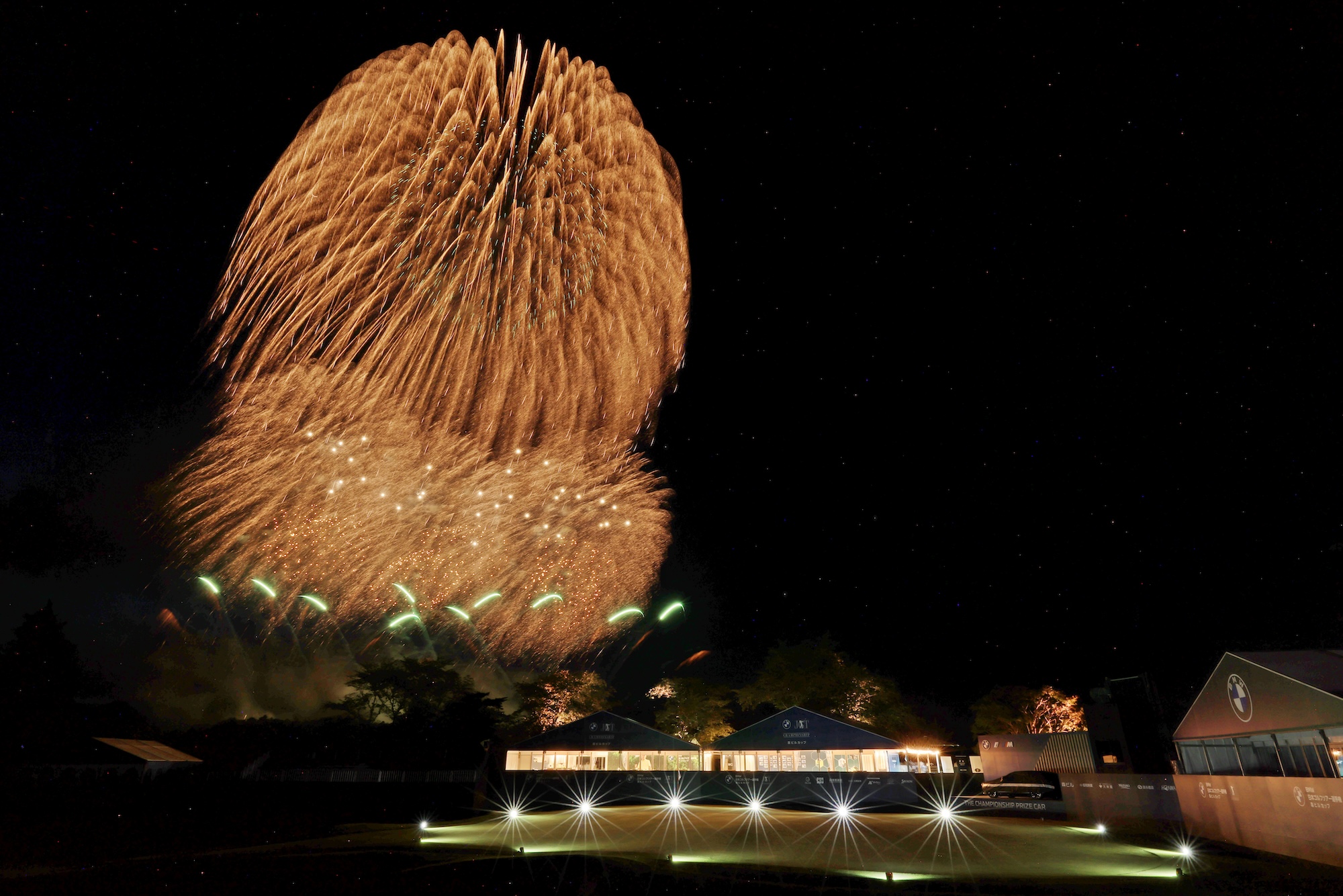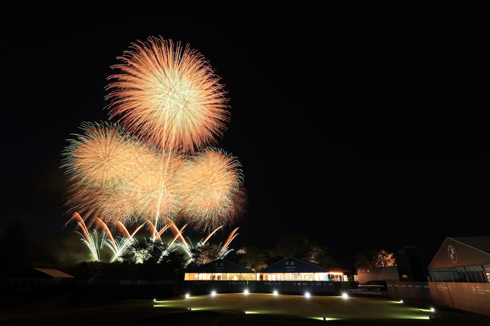 壮大な花火ショーが宍戸ヒルズカントリークラブを彩る