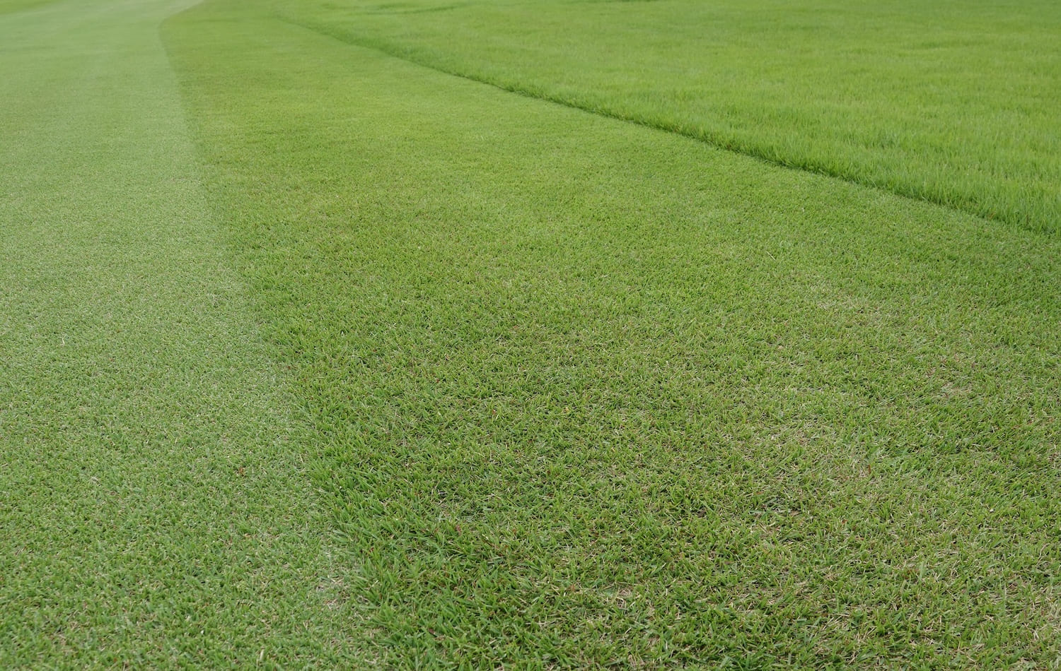 左からフェアウェイ、ファーストカット、ラフ。昨年まではラフだった部分をファーストカットにすることで、選手にとってはラフに入る確率が減り伸び伸びと打てるようになりました。