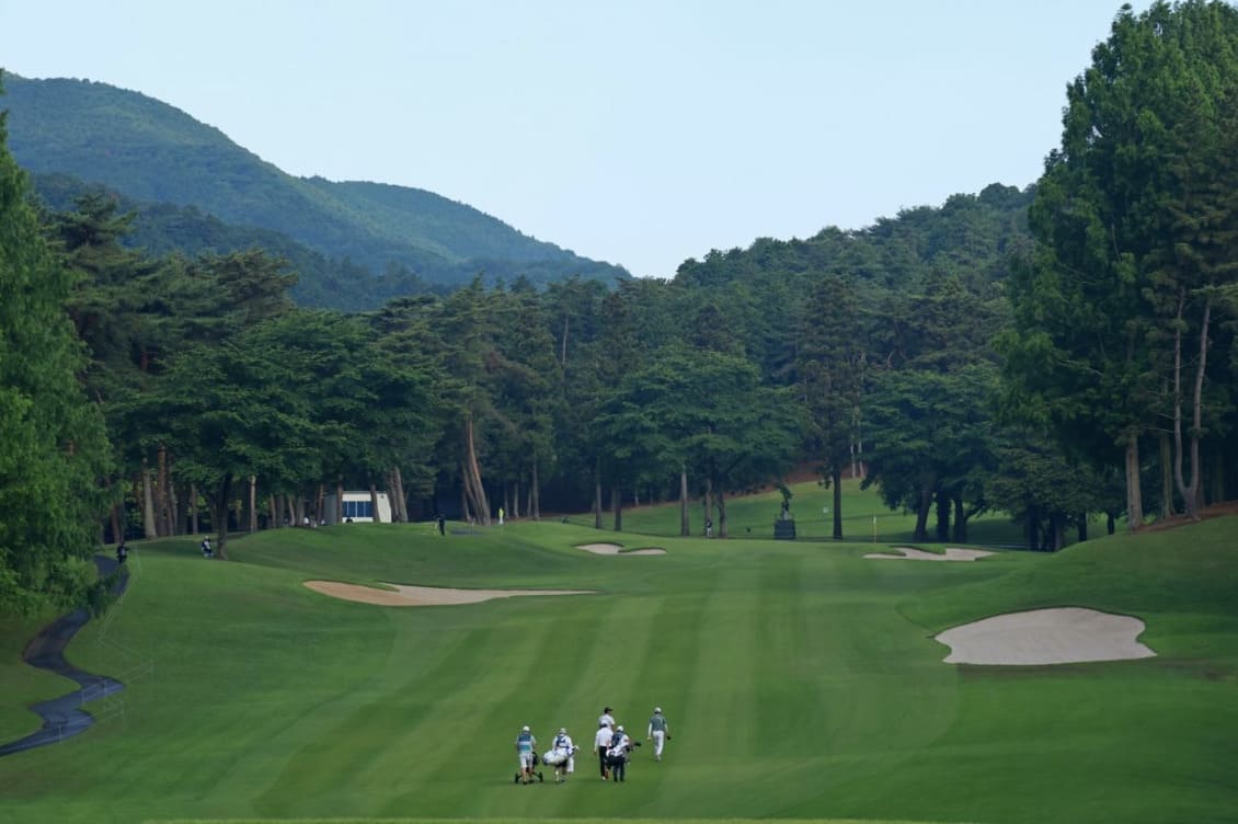 1番ホール。昨年よりもファーストカット(フェアウェイとラフの中間)のエリアが広くなっている。