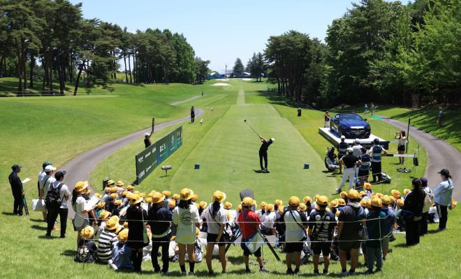 開催コースの茨城県笠間市にある全11小学校がゴルフトーナメント会場で“課外授業”を実施