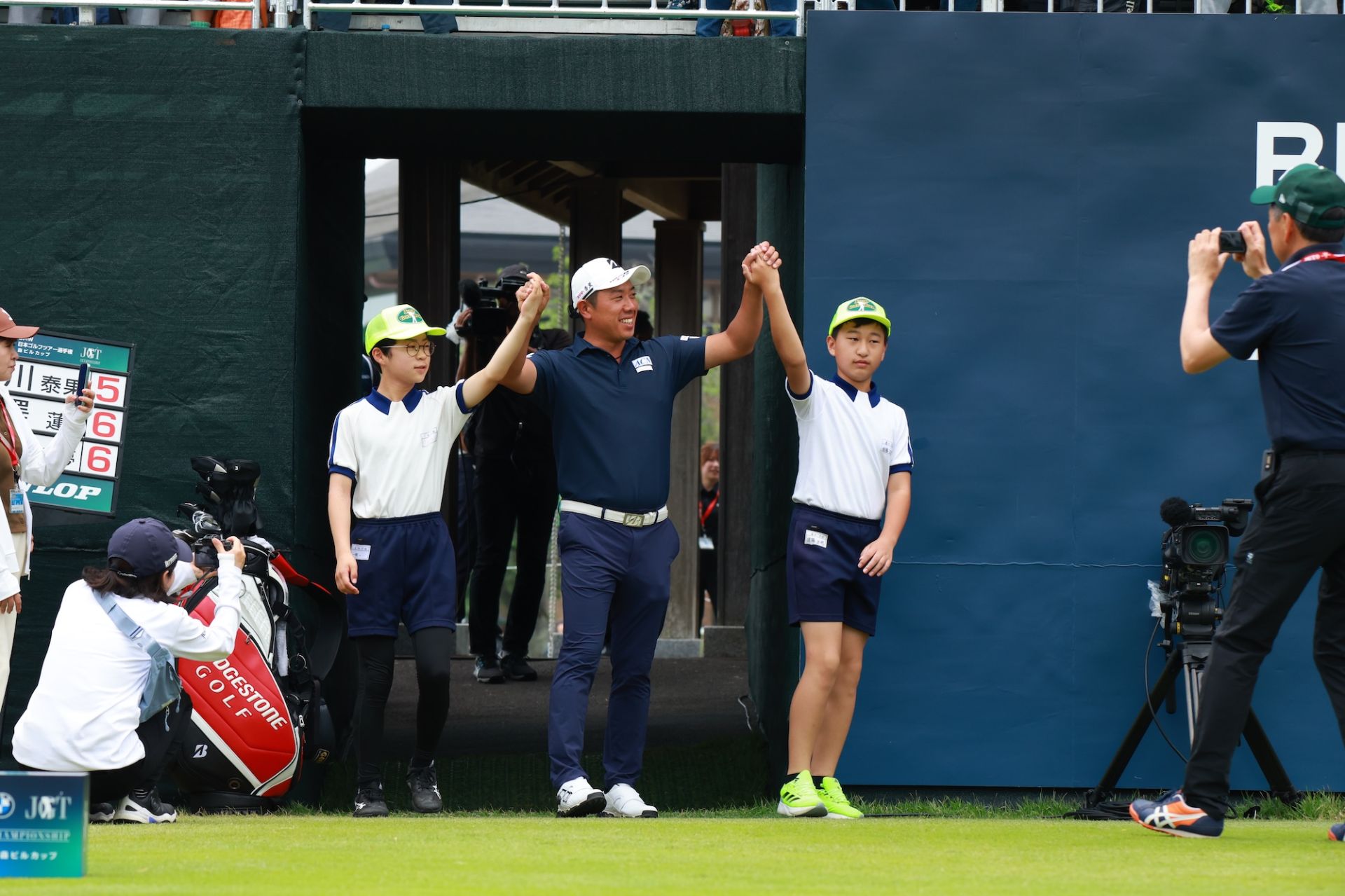 また、キッズエスコートも実施。昨日7日(土)に実施された「スナッグゴルフ対抗戦茨城県予選会森ビルカップ」に出場した小学生たちが1番ティでツアープレーヤーと一緒に手をつないで入場。選手のスタートを見送りました。