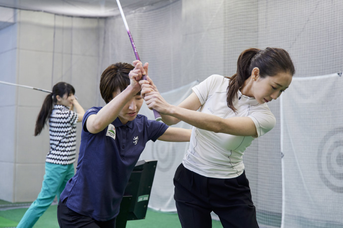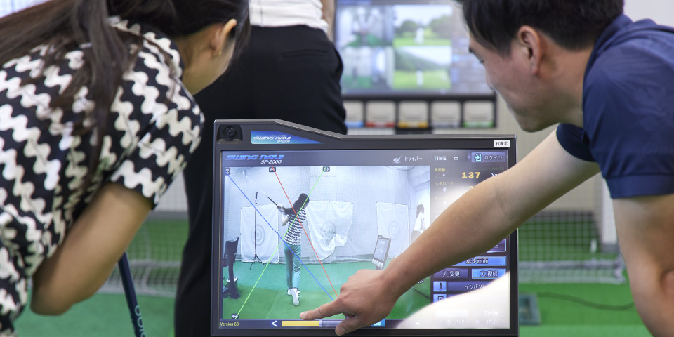 ゴルフ特有の「体をひねる」動き。まずは関節などの可動域をTPIライセンス保有の専門スタッフが確認し、体に無理のないスイングを作ります。インドアレッスンでは、最新の設備とメソッドを用いて、上達のための要点が効率的に学べます。