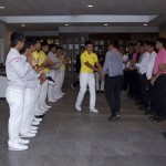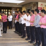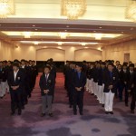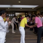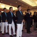 対戦が終わった後はお互いの健闘を称えエール交換。薄暗くなりつつあったゴルフ場に、両校代表の声が響きわたります。大学対抗戦ならではの光景です。