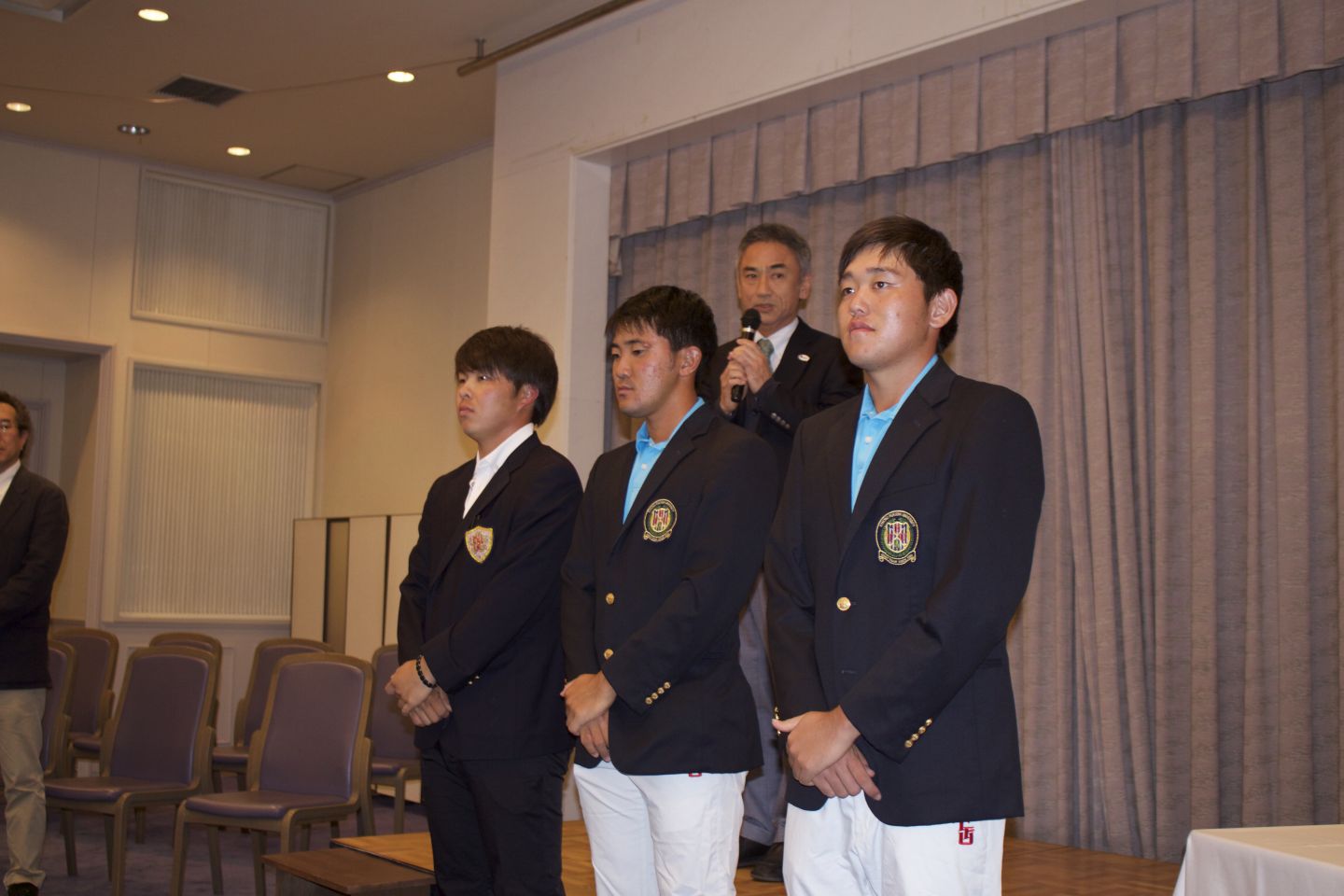 キャプテンの岡村了選手に話を聞くと、「春に負けているので勝てて良かったです。やな位置にバンカーが多く、最終日の今日は特にピンが難しいところにありましたが、上手くマネージメントができて良かったです」と話してくれました。