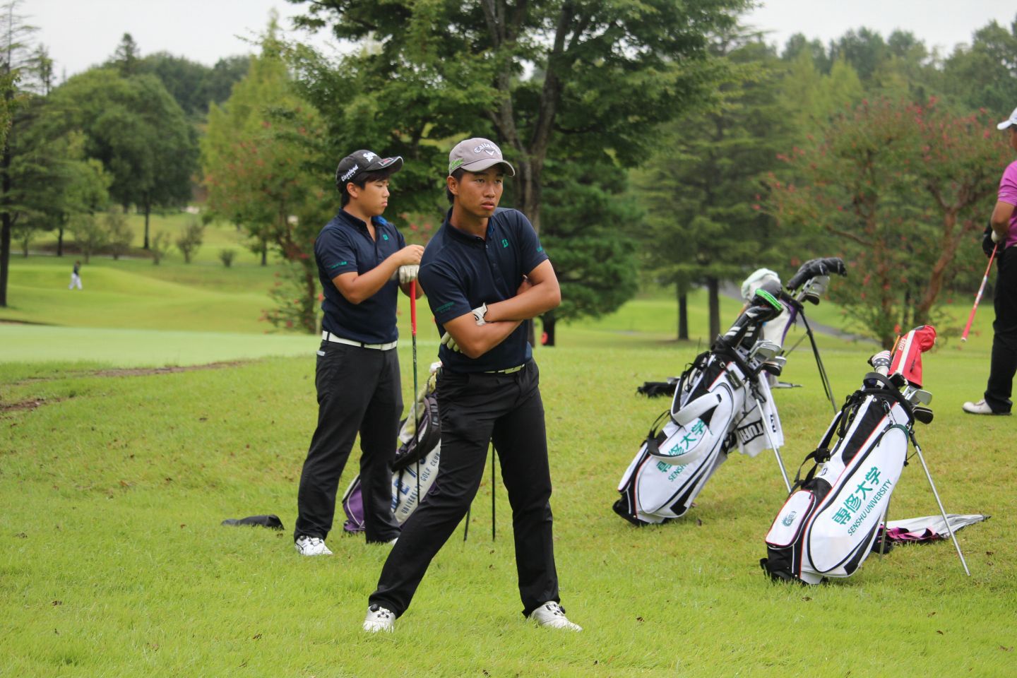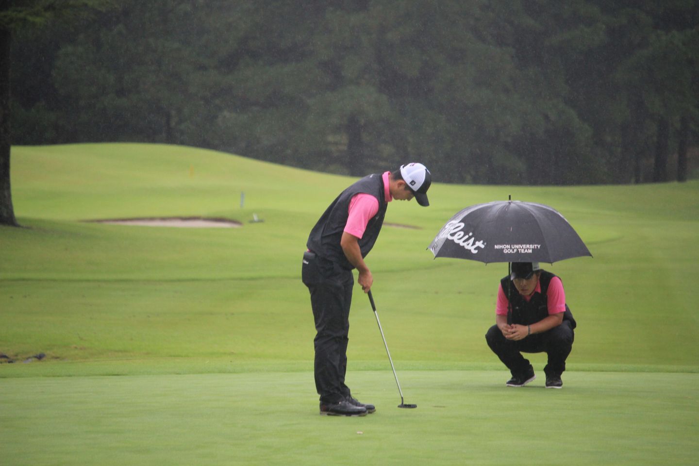 競技は3日間。初日勝った4校が2日目対戦し2日目も勝った2校で3日目に決勝戦が行われます(負けた大学は順位決定戦にまわります)。初日、2日目を勝ち上がってきたのは、2017年日本アマを制した大澤和也選手などがいる日本大学と2017年の日本オープンでアマチュアながら2位に入った金谷拓実選手がいる東北福祉大学でした。