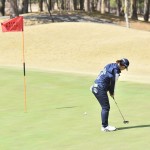そして、スタート前の試合会場で気になったのが沼田玲奈選手。なんと右手の人差指に包帯を巻いていたので「プレーに支障がなかったか」などをホールアウト後に聞いてみました。「実は人差指の爪をはがしてしまったんです。とりあえず今日は頑張ってプレーしました。でもグリップに余計な力が入らなくて逆に良い面もあったかも知れません(笑)。スコア的には良くなかったですが、ミスは一定な感じでしたから…。今後は爪が生えてくるまで基礎練習に励みます(笑)」と笑顔で話してくれました。指の爪が剥がれた状態でのプレーとなった沼田選手は、6オーバーのトータル「78」(16位)で競技を終えています。