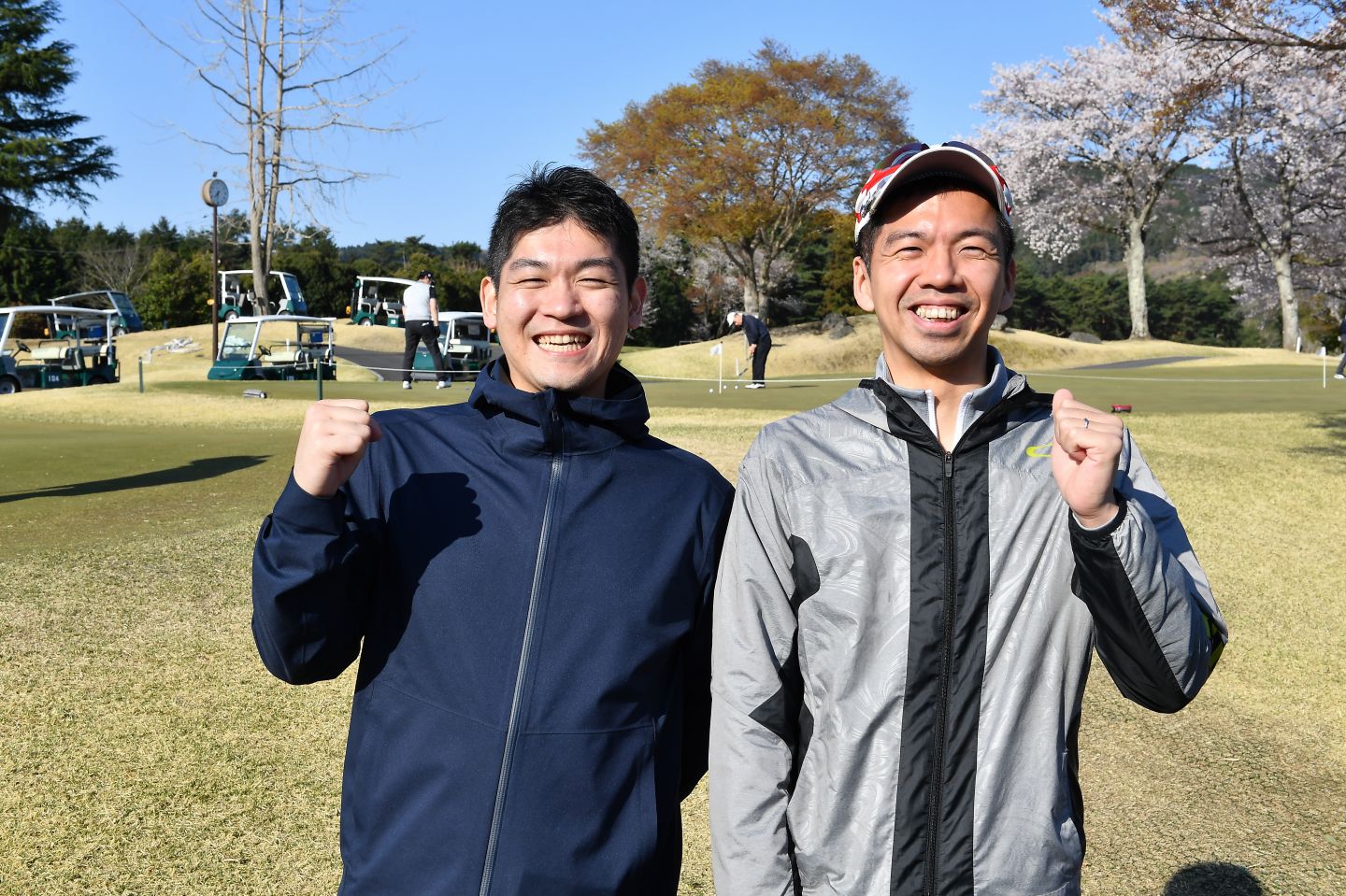 この大会を目標に会社のゴルフ部で練習しているという、日本ビジネスシステムズ株式会社の神田尋史さん、白川真秀さんペア