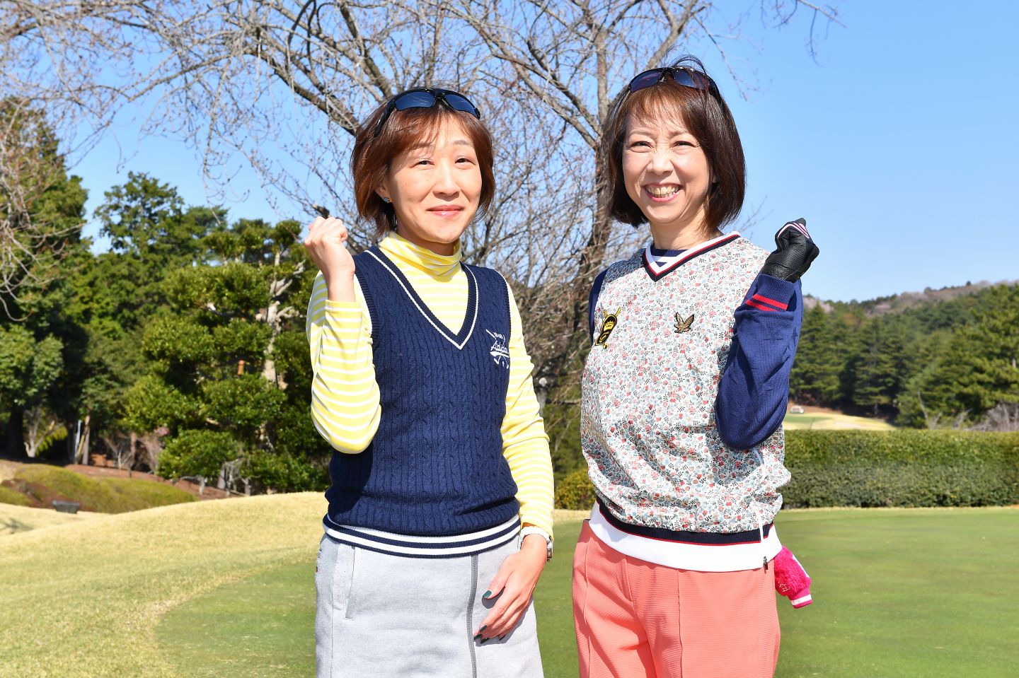 一方、フレンドリー部門ではコースの美しい景観を満喫しながら、プレーを楽しんでいるゴルファーが数多くいました。なかでも目立っていたのが女性ペアです。ヒルズゴルフ アカデミーの生徒さんで、日々ゴルフの練習に励んでいるというのが、日本アルコン株式会社の井上知子さん、堀井則子さんのペアです。「今日は今までの練習の成果が出るか宍戸ヒルズカントリークラブで腕試しをするつもりで来ました(笑)。とはいえ、実はきちんとした競技に出場するのもダブルスも初めてなので緊張しています。目標は自己ベストを出すことですが、今回の出場経験が次に繋がればうれしいですね」と語ってくれました。