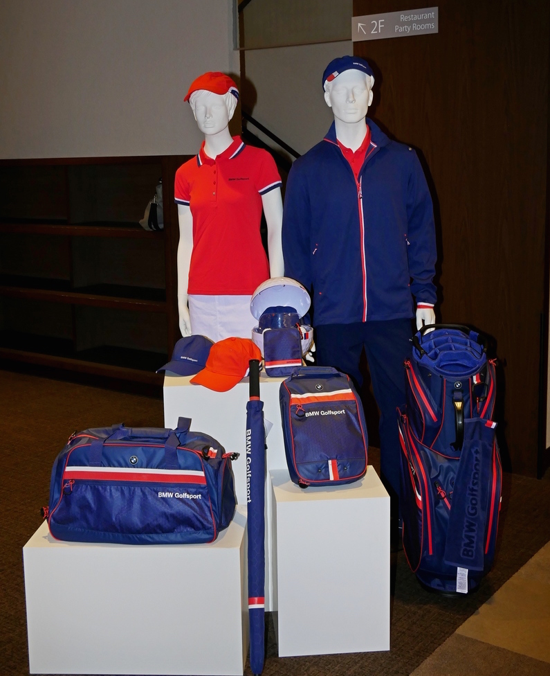 また、2階へ上がる1階の階段付近には、優勝副賞を提供する『BMW』のゴルフ関連グッズなどが展示されている。
