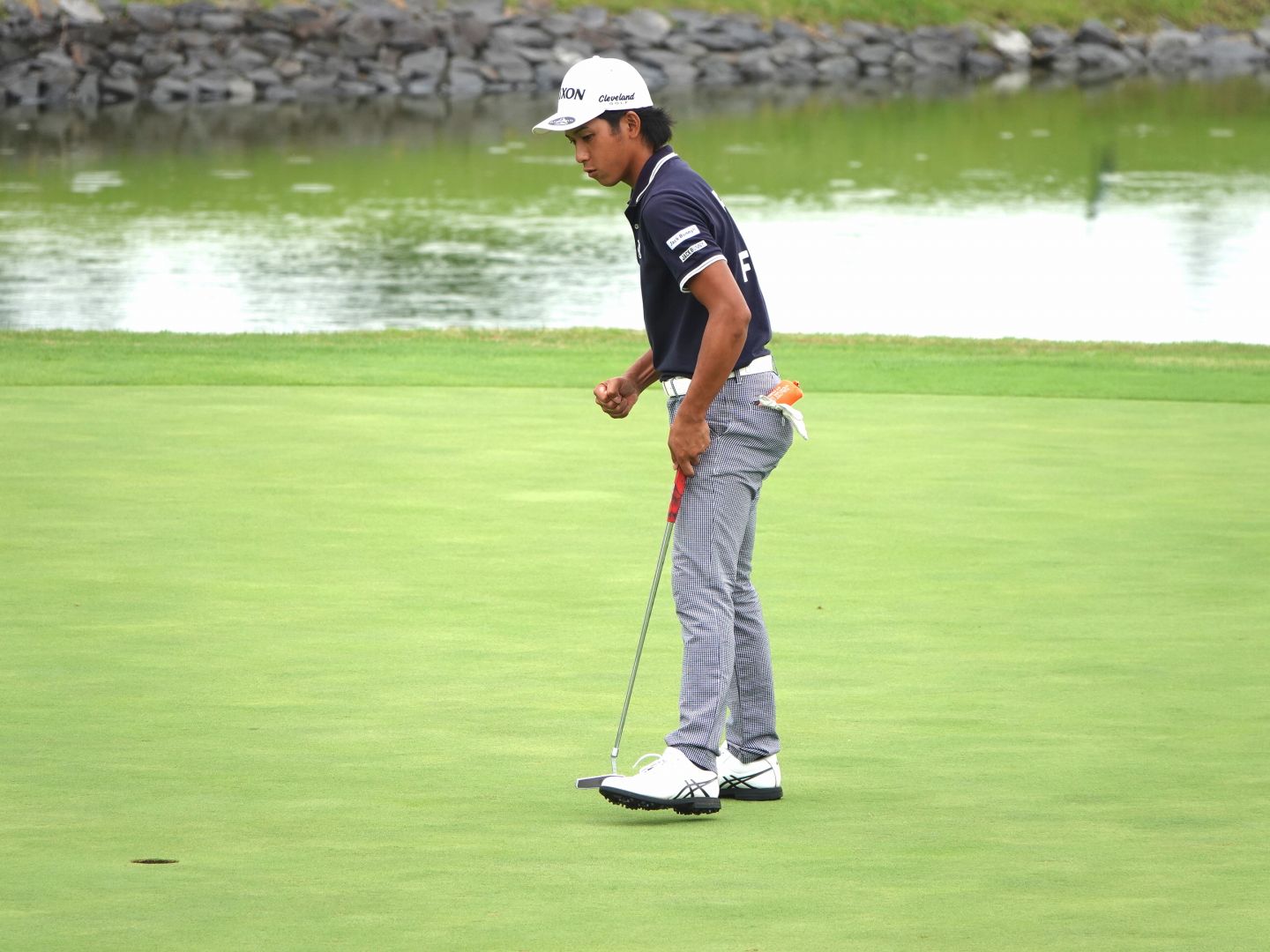 18番でバーディパットを沈めた後に小さくガッツポーズをした川上優大選手