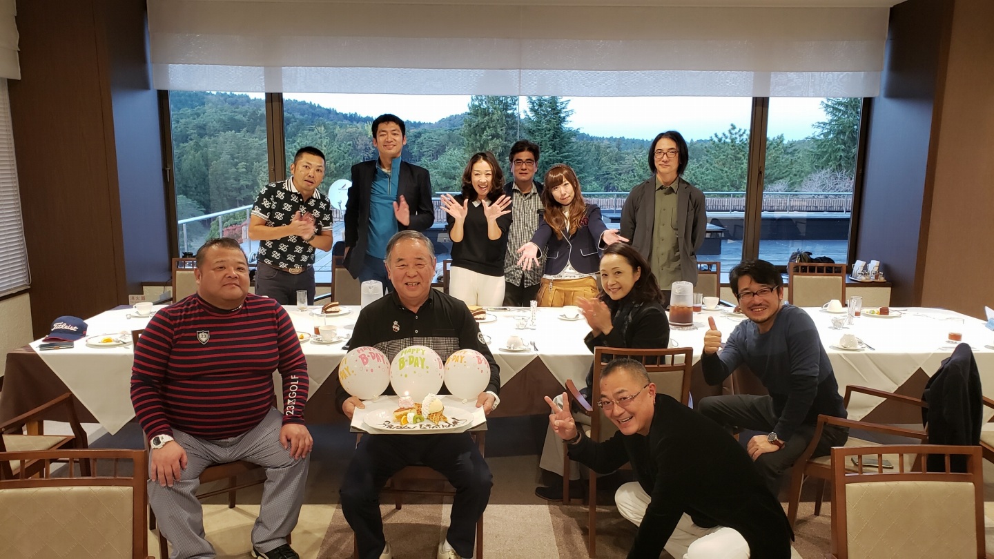 宍戸ヒルズカントリークラブのラウンド後、メンバーの方の誕生日をお祝い。宍戸ヒルズのメンバーだけでなく、ヒルズゴルフクラブのメンバーも参加。両方のメンバーもたくさんいらっしゃいます