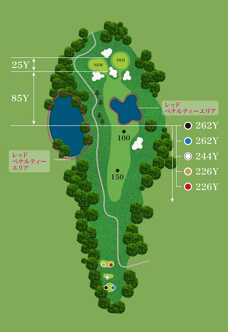 第1打はしっかりとフェアウェイキープ。グリーン中央のバンカーは禁物。