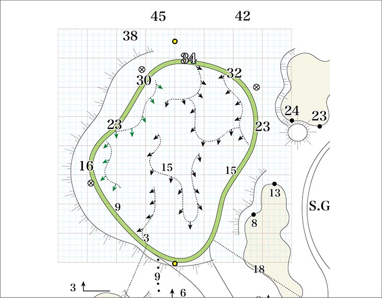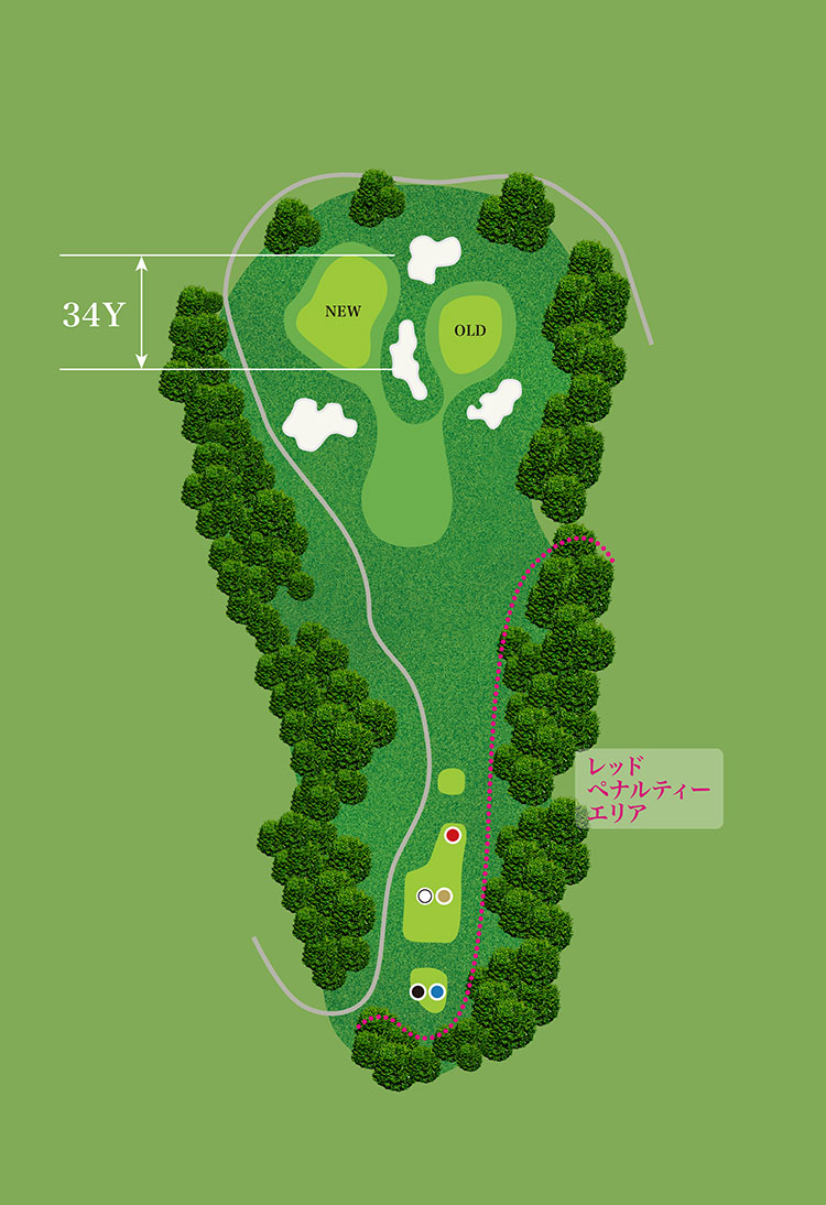 打ち下ろしのショートホール。下りの距離感に注意。