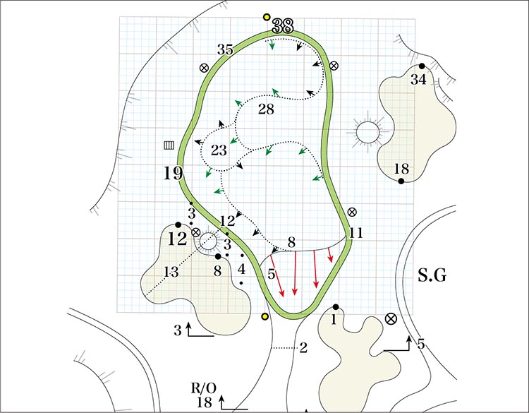グリーンまで登りがつづく。第2打以降は呼吸を整えて、左OBが近いので注意。