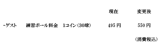 2024年9月1日よりゲスト練習ボールを以下の通り改定いたしますのでご了承くださいませ。