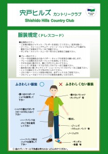 宍戸ヒルズドレスコードについて◇ 宍戸ヒルズのドレスコードは『スマート&カジュアル』とさせていただき、クールビズシーズンを除きジャケットの着用をお願いいたします。 ◇ ジーンズ、Tシャツ、ジャージ、サンダルでのご来場はお断りをいたしております。 ◇ 当クラブのドレスコードに添えない場合には、ご利用を控えていただく場合がございます。 宍戸ヒルズカントリークラブ 支配人 大島正雄 |