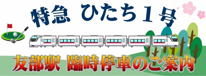 昨年に引き続き、春の行楽シーズンに合わせて2020年3月7日(土)~5月30日(土)までのGWを除く下記日程で、上野駅7:00発の特急ひたち1号が、友部駅に臨時停車いたします。
