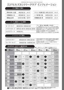 コンペ開催日程宍戸ヒルズオープンコンペ日 程 9月12日(水)・10月31日(水) 料 金 会員:11,400円 ゲスト:プレー代+参加費1,500円 競技方法 ぺリア方式(18ホールストロークプレー) ヒルズレディース日 程 10月4日(木) 料 金 会員:13,300円 ゲスト:14,800円 ※参加費込 競技方法 新ぺリア方式(18ホールストロークプレー) ヒルズマスターズ日 程 9月7日(金)・18日(火)・10月12日(金)・22日(月) 料 金 会員:9,900円 ゲスト 11,800円 ※参加費込 競技方法 新ペリア(前半9ホールストロークプレー) |