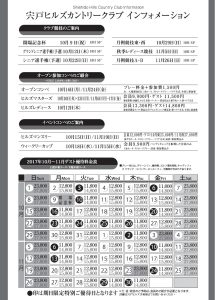 コンペ開催日程宍戸ヒルズオープンコンペ日 程 10月16日(月)・11月24日(金) 料 金 会員:11,400円 ゲスト:プレー代+参加費1,500円 競技方法 ぺリア方式(18ホールストロークプレー) ヒルズレディース日 程 10月12日(木) 料 金 会員:13,300円 ゲスト:14,800円 ※参加費込 競技方法 新ぺリア方式(18ホールストロークプレー) ヒルズマスターズ日 程 10月10日(火)・23日(月)・11月6日(月)・17日(金) 料 金 会員:9,900円 ゲスト 11,500円 ※参加費込 競技方法 新ペリア(前半9ホールストロークプレー) |