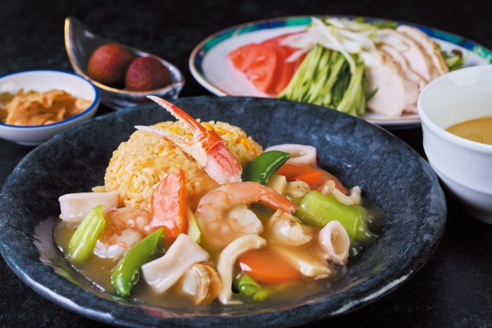 おすすめメニューのひとつ、「中華ランチ(海鮮あんかけ炒飯)」はパラリと仕上げたあっさり味の卵炒飯と、海鮮や春野菜をたっぷり使ったあんの絶妙なハーモニーをお楽しみいただけます。ピリ辛のごまだれが食欲をそそる鶏チャーシューのサラダもついた、ボリュームたっぷりのランチです。