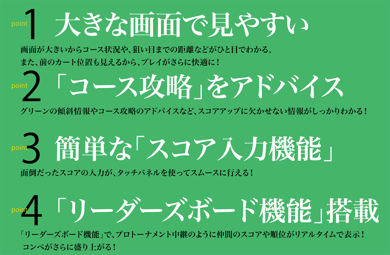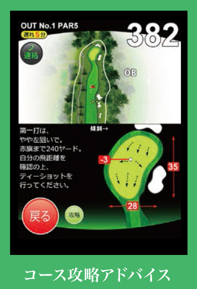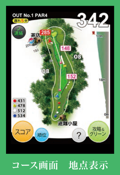 コースレイアウトや狙いどころまでの距離など一目でわかります。
