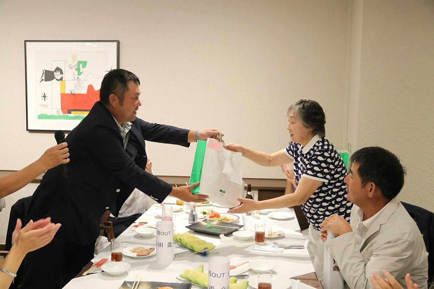 ラウンド後のパーティも宍戸ヒルズプロアマ大会のメインイベントです。毎回好評の横田真一プロのトークでは、腸内環境と身体の健康、そしてゴルフとの関係について解説。参加者の皆様が興味津々の健康ネタを、時に笑いを交えながらの楽しく話してくださいました。そして表彰式を実施。優勝は丸山大輔チームでなんと18アンダーという夢のスコアが飛び出しました。さらに、各プロが各チームのMVPを決め、プロが持ってきた賞品を授与。参加者のアマチュアの皆さんは普段なかなかできないプロとの交流という機会を最後まで楽しんでいました。