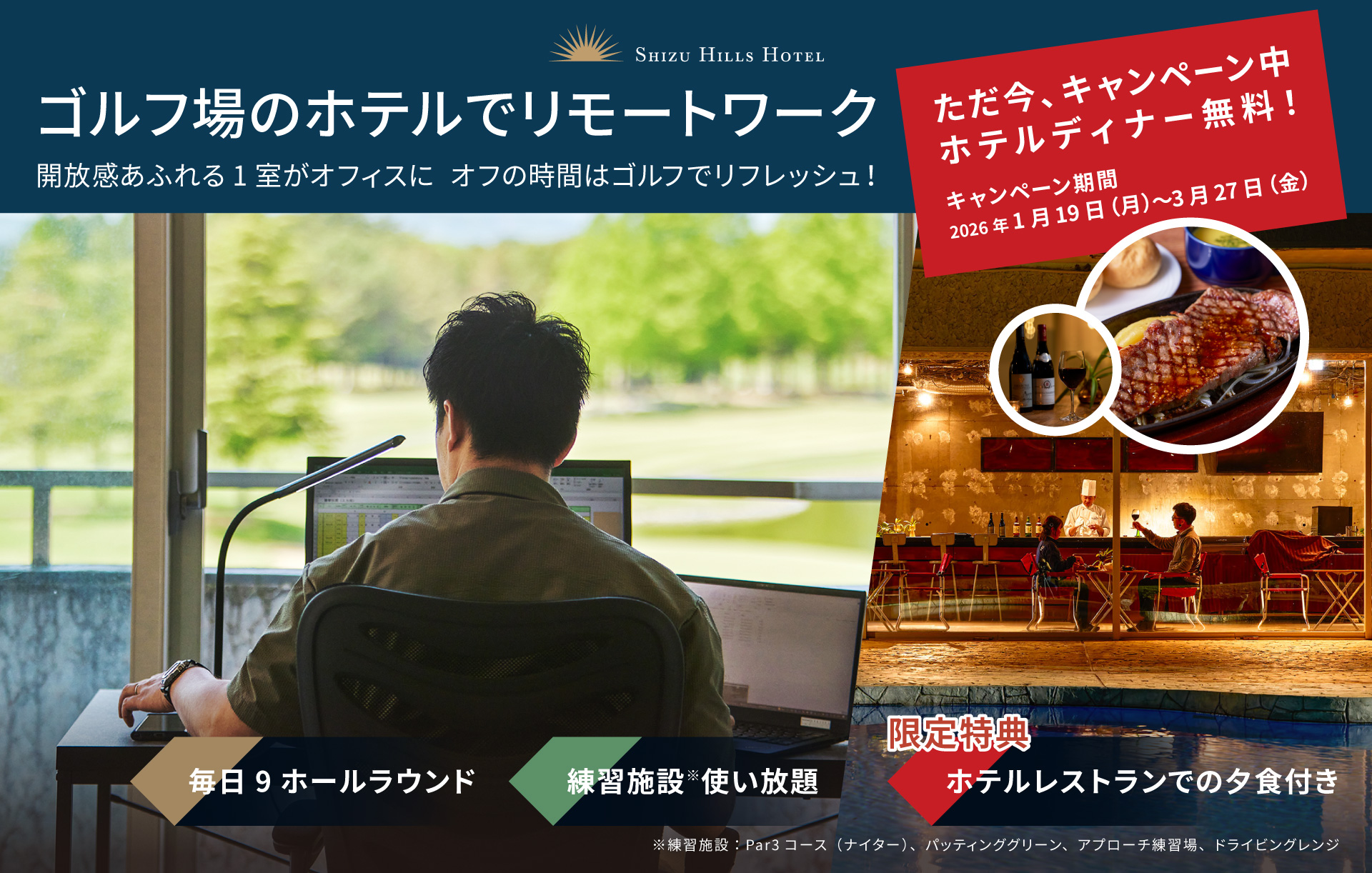 029-296-2111 会員限定メニュー お問い合わせ 天気予報 WEB予約 アクセス JP / EN ビジョン コース 練習施設 レッスン 施設 ニュース & イベント 会員権のご案内 お問い合わせ WEB予約 アクセス 会員限定メニュー JP / EN VISION ツアー48勝の中嶋常幸プロが、「日本一の素晴らしいコースにしたい」と設計監修。初心者からトッププロまで、どんなゴルファーでも楽しめる舞台です。 LEARN MORE 森ビルゴルフリゾート株式会社 ブランドムービー「それぞれの願いへ篇」 森ビルゴルフリゾート株式会社 ブランドムービー「ゴルフのある人生篇2025」 NEWS & EVENTS ニュース 2026年リモートワークプラン【1月19日~3月27日限定キャンペーン】 PICKUP 2026.01.16 ニュース キャンプ場2025年秋季シーズンクローズのお知らせ 2026.01.26 ニュース 【※予約受付中】冬季限定ラウンドレッスンイベント開催! 2025.12.13 ニュース 2025年冬のおすすめレストランメニューのご紹介 2025.12.18 READ MORE COURSE すべてのホールに、ドラマがある。 LEARN MORE ACCESS 静ヒルズカントリークラブ 〒319-2132茨城県常陸大宮市小場5766 TEL:029-296-2111 お車でお越しの方 電車でお越しの方クラブバス(予約制)もご用意しております RESERVATION 当サイトからのご予約が最もオトクな「ベストレート保証」。ご予約はこちらからどうぞ。 WEB予約 WEBからのお問い合わせ 電話でのお問い合わせ029-296-2111