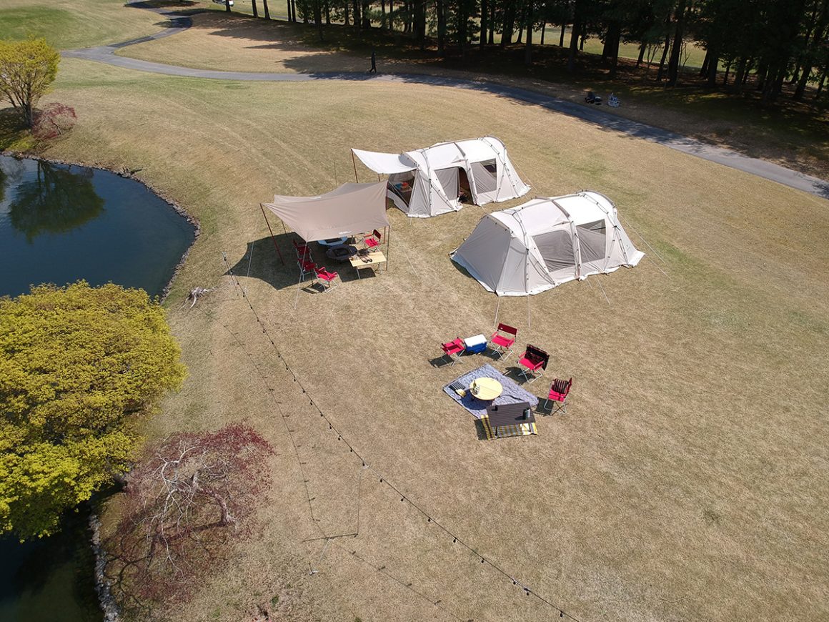 ゴルフコースに広がるフラットな芝生の上で楽しく快適なキャンプをしませんか?