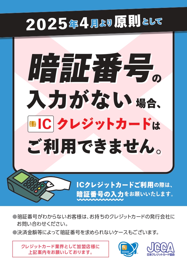 ICチップ付きクレジットカードの暗証番号入力必須化について