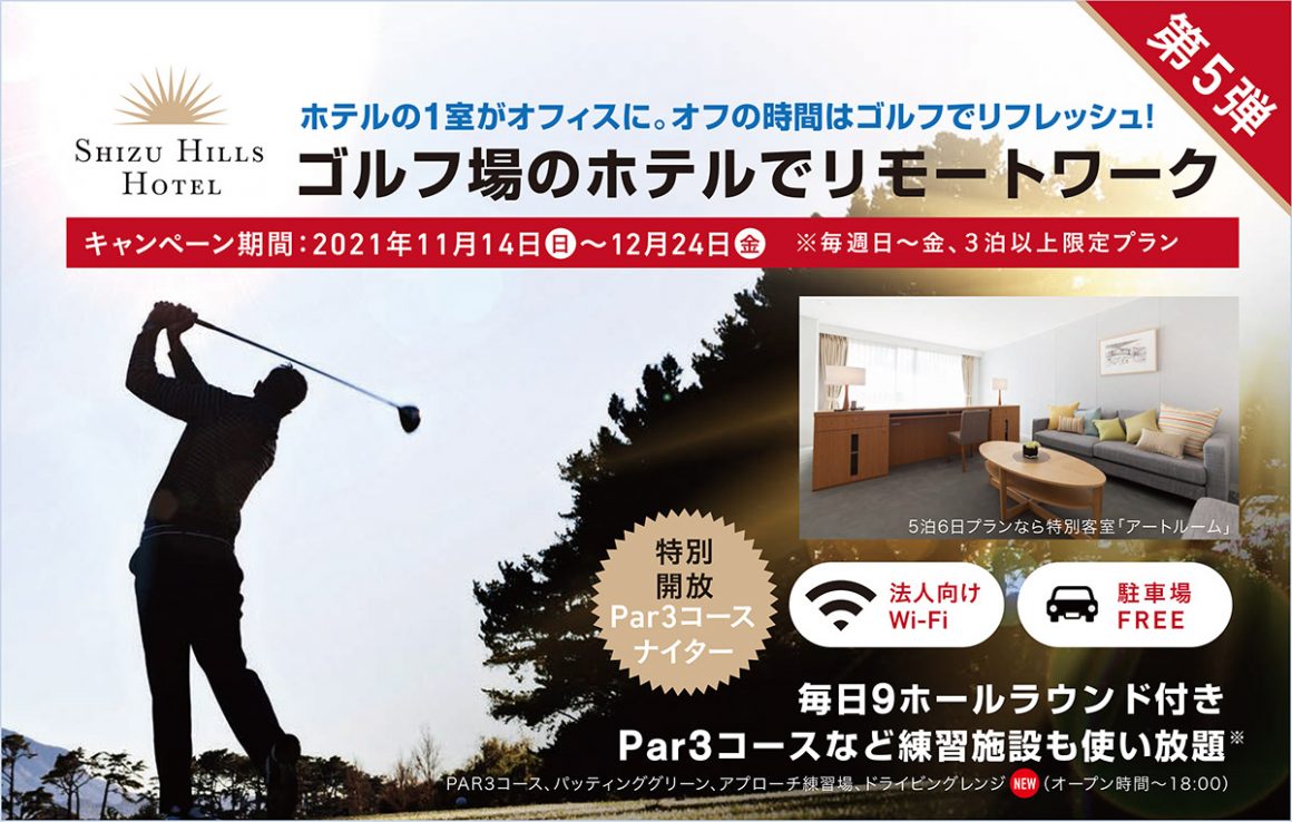 快適なホテルの1室が、あなたのオフィスに。オフの時間はゴルフでリフレッシュ!